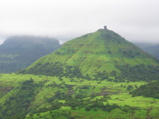 The funnel shaped pinnacle of this fort stands prominently on the Panvel - Pen road (10 km). Thickly forested, the area has been declared as a bird sanctuary. Reach the base of the funnel by a man-made route, which is easy to climb in a hour. The 45 m thumb shaped funnel rises steeply with caves at its base.